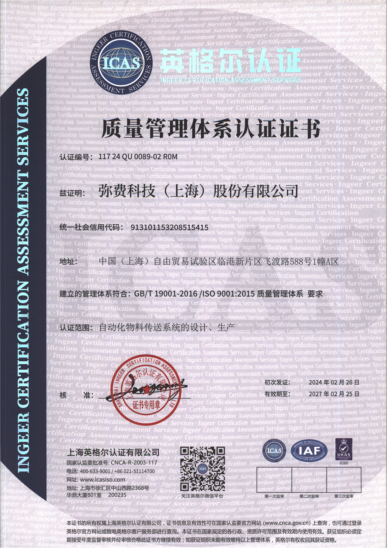 自 2018 年以来,kdpay钱包官网科技取得了国际标准化组织(ISO)质量管理体系(ISO 9001)、环境管理体系(ISO 14001)和职业健康安全管理体系(ISO 45001)认证。在AMHS产品技术体系领域,我们遵循半导体设备标准通讯协议,包括SEMI E37、 E82、E30、 E84、E10 等,使其易接入半导体晶圆厂MES系统来实现数据交互。